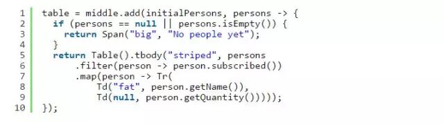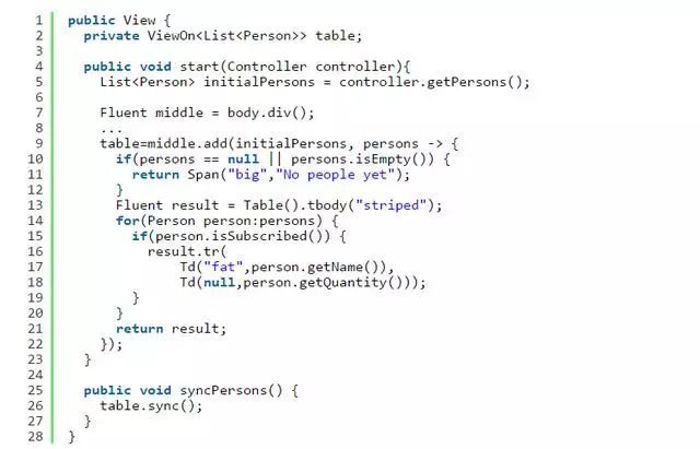 所有代码都是纯Java,所以如果你喜欢流,那也没有问题。 tbody——就像许多其他容器(如标签)一样,它需要一个CSS类和一个Fluent对象的列表或流。