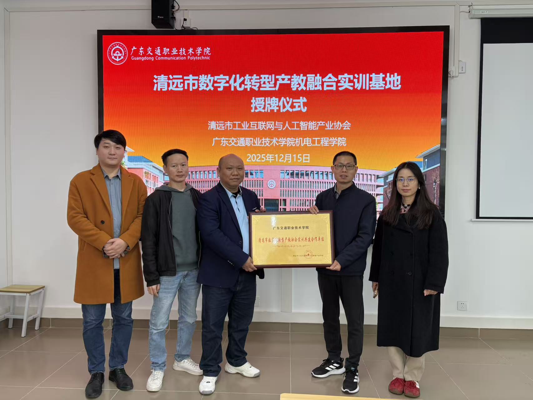 2025年12月15日,在清远市工业互联网与人工智能产业协会的推动下,我司负责人兼协会专家委主任刘展海带队前往多所院校及企业,开展“清远市数字化转型产教融合实训基地”授牌仪式,旨在深化校企合作、产教融合,推动数字技术与实体经济深度融合,为区域产业升级培育高素质技术技能人才。