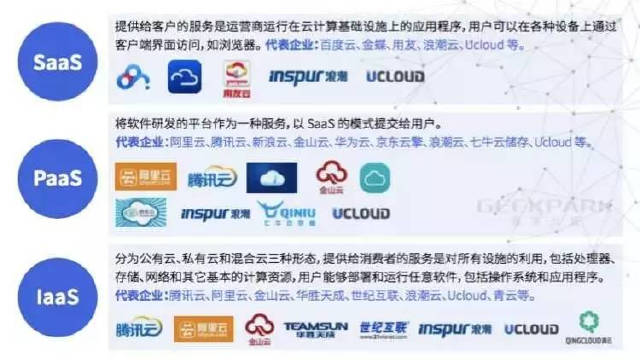 人工智能的基础技术主要依赖于大数据管理和云计算技术,经过近几年的发展,国内大数据管理和云计算技术已从一个崭新的领域逐步转变为大众化服务的基础平台。而依据服务性质的不同,这些平台主要集中于三个服务层面,即「基础设施即服务(IaaS)」、「 平台即服务(PaaS)」和「软件即服务(SaaS)」。