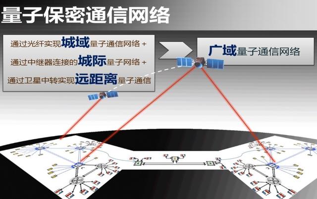被称为“京沪干线”的地面量子通信网络,是“天地一体化”量子通信网络的地面组成部分。对于“京沪干线”的建设原理,潘建伟解释道:在建设地面量子通信网络的工程中,主要的应用都集中在城市范围内,将城市之间的城域网连接起来实现城际量子通信非常关键。据介绍,目前的技术仅能够达到点对点百公里量级的量子通信,所以就需要通过建立可信任的中继站点来起到信息中转的作用,连接相距数百公里两个城市的量子通信网络。已经建立起来的北京、济南、合肥、上海四个量子通信城域网,将在可信中继的帮助下,通过光纤串联起来,构成量子通信的“京沪干线”。未来还将会在每个城市中建设光学天线接收卫星的信号,这样,随着“墨子号”的顺利升空,地面的“京沪干线”与空间的量子卫星共同构成了覆盖全球的广域网络,充分利用卫星覆盖的广域性和光纤入户的便利性,从而真正实现“天地一体化”的量子通信。