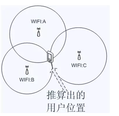Wi-Fi定位技术有两种,一种是通过移动设备和三个无线网络接入点的无线信号强度,通过差分算法,来比较精准地对人和车辆的进行三角定位。另一种是事先记录巨量的确定位置点的信号强度,通过用新加入的设备的信号强度对比拥有巨量数据的数据库,来确定位置(“指纹”定位)。