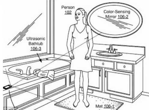 据了解,谷歌智能浴室将配备多个非侵入式健康监测仪器,如在马桶上安装压力传感器,用来检测用户血压;在镜子中装入色彩传感器,通过特定波形感知皮肤的颜色,记录肢体或体内器官的形状及颜色变化。