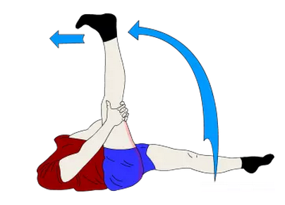 动作:慢慢让左腿靠近胸部,感觉紧张时停下。