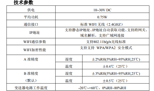 产品是一款WIFI无线数据传输的工业级温湿度变送器,可将采集的最多4路温湿度数据通过WIFI方式上传到服务器。本系列产品充分利用已架设好的WIFI通讯网络实现数据采集和传输,达到温湿度数据集中监控的目的。可大大减少施工量,提高施工效率和维护成本。