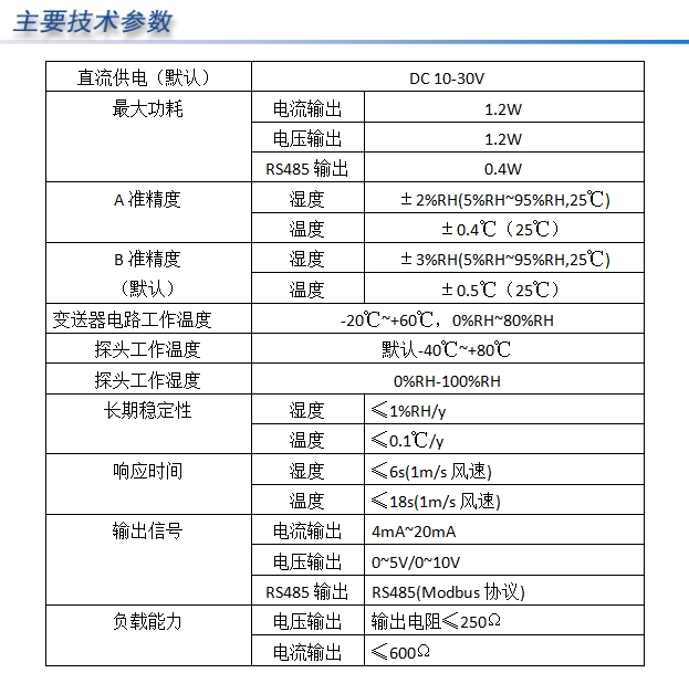 本温湿度变送器为风管温湿度变送器专用外壳,采用美国进口工业级微处理器芯片、进口高精度温湿度传感器,确保温湿度变送器优异的可靠性、高精度和互换性。 本温湿度变送器的温湿度传感器增加了滤尘罩,标准法兰盘适合测量暖气回风管道温度。输出信号类型分为RS485\4-20mA\0-5V\0-10V等。