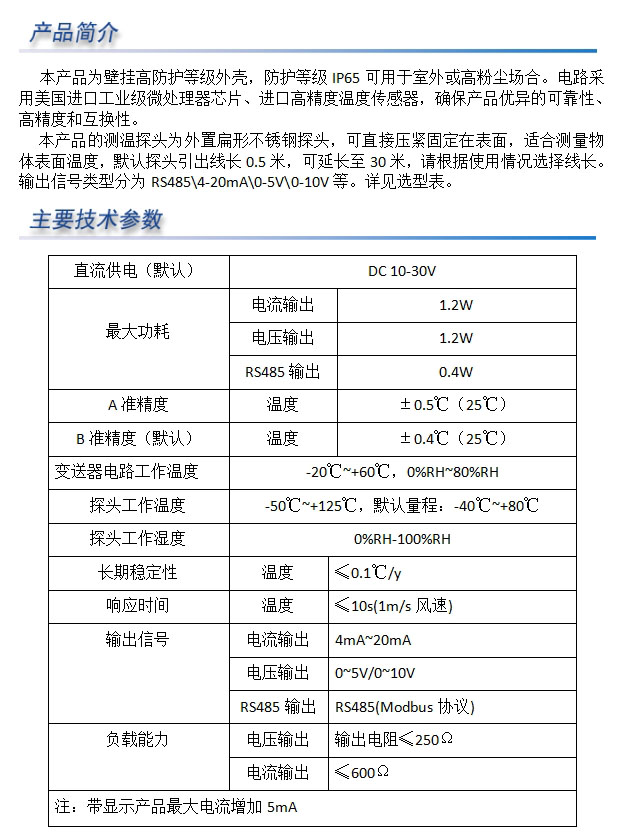 壁挂王字壳单温度扁形不锈钢探头