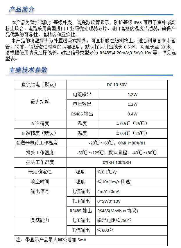 壁挂王字壳单温度扁形不锈钢探头
