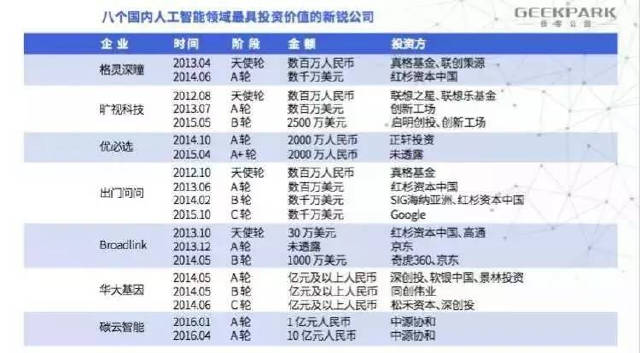 三、八个国内人工智能领域最具价值的新锐公司