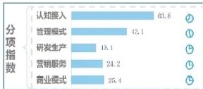 据工业和信息化部电子科学技术情报所统计的数据显示,我国中小企业“互联网+”指数为32.1,处于“互联网+”基础应用阶段。这次报告从认知接入、管理模式、研发生产、营销服务和商业模式等五个维度进行分析、打分,数据覆盖31个省及重点城市,涵盖110多万企业及服务商和近500万服务需求方,综合反映当前中小企业对互联网的认知、接入、应用和创新情况。