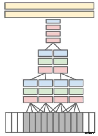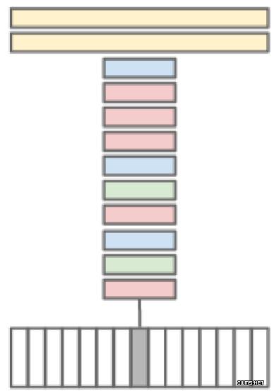 一种最直接的方法就是将视频进行截帧,然后基于图像粒度(单帧)的进行deep learninig 表达, 如图2所示,视频的某一帧通过网络获得一个识别结果。图2为一个典型的CNN网络,红色矩形是卷积层,绿色是归一化层,蓝色是池化层 ,黄色是全连接层。然而一张图相对整个视频是很小的一部分,特别当这帧图没有那么的具有区分度,或是一些和视频主题无关的图像,则会让分类器摸不着头脑。因此,学习视频时间域上的表达是提高视频识别的主要因素。当然,这在运动性强的视频上才有区分度,在较静止的视频上只能靠图像的特征了。